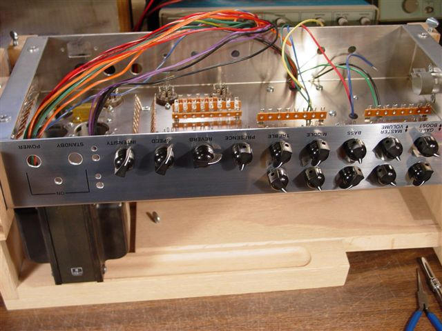 So fast forward to 2006 and after spending about a year on Jacks waiting list I received my Anderson 20/45. During the creation of my amp Jack would send pic’s of it’s progress. Here is a shot of the insides during the construction and then the final product.