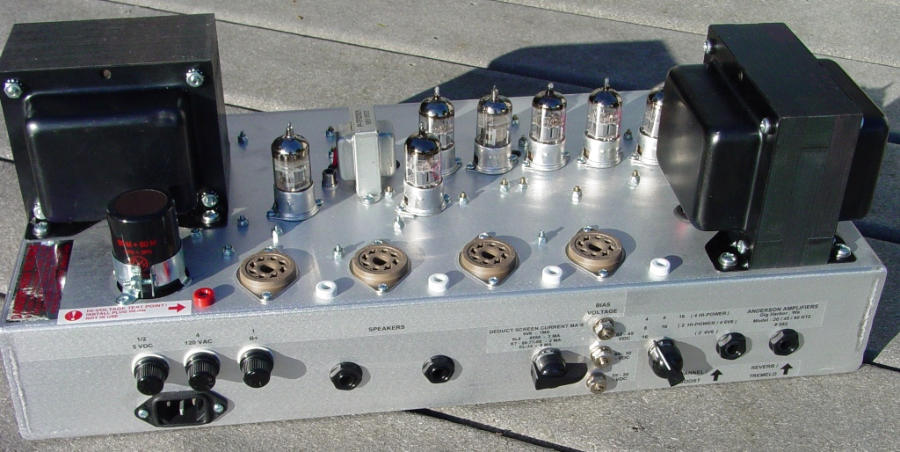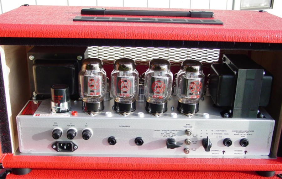 Since you can use so many different power tubes the tone and dynamics of the amp really change. So far I’ve run EL84’s, EL844’s, 6V6’s, 6L6’s, EL34’s, E34L’s, KT77’s and KT66’s. I’m looking forward to running 6550’s, KT88’s and 6CA7’s in the future. So far my favorite combination has got to be 6V6’s along with a 5Y3.I get a chance to play a lot of cool amps but to me the Anderson reigns supreme. Its tonal depth and the way it responds to your playing dynamics never fail to amaze me.