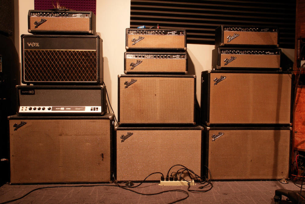 Fender amps reside in studios all over the planet and here in the ET studio its no exception. Below is a photo of the Fender wall we have here.