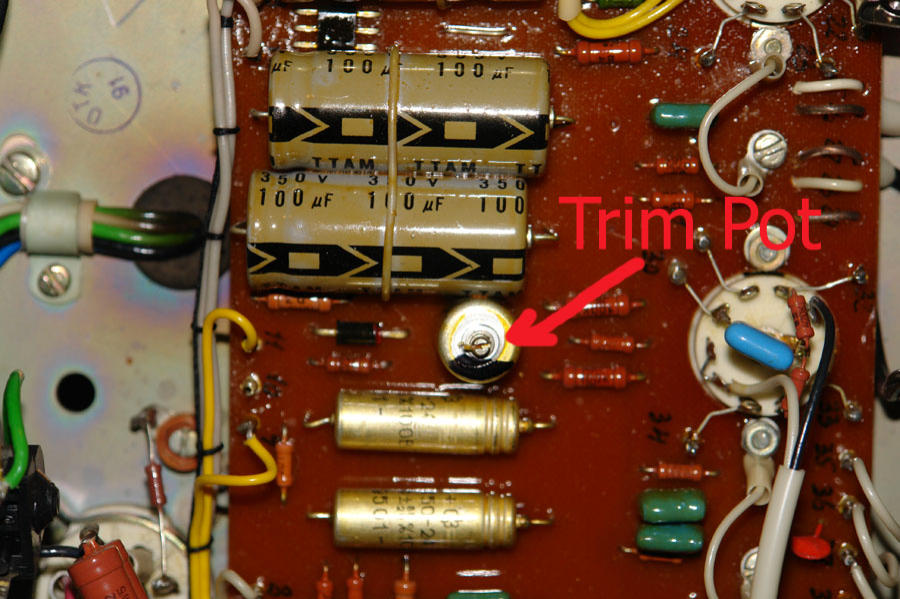 Some trim pots sit perpendicular to the main board as shown in the video and are adjusted from the side where others are flat and adjusted from the top. Here are a few examples.