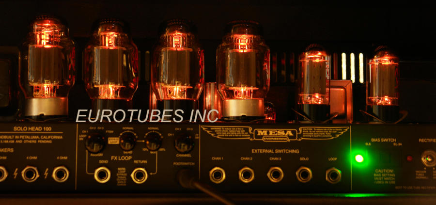 The Dual and Triple rectifiers are set very cold in the 6L6 mode even when in the solid state rectifier mode and the bold setting. So even the hottest 6L6’s on the planet will still not get the bias as high as it could safely be run. When in the EL34 mode the bias is quite warm with even a moderate grade of EL34’s which is why Mesa will tell you that if you’re going to use EL34’s that you have to run them in the tube rectifier mode. The reason for this is because when the stock 5U4 rectifiers are switched in the plate voltage drops from about 475 on average to about 415 volts so in turn the bias goes down.