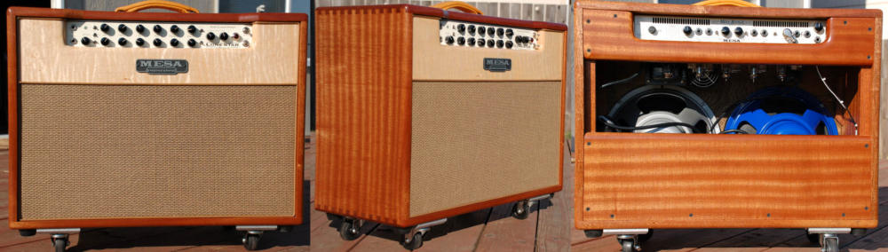 Here is a shot of Kris Siewell’s custom Lone Star Special. It’s clad in African Ribbon Mahogany and has a flame Maple front. We just did tubes and an Alnico Silver Bell and Blue Dog for him and he loves the tone!