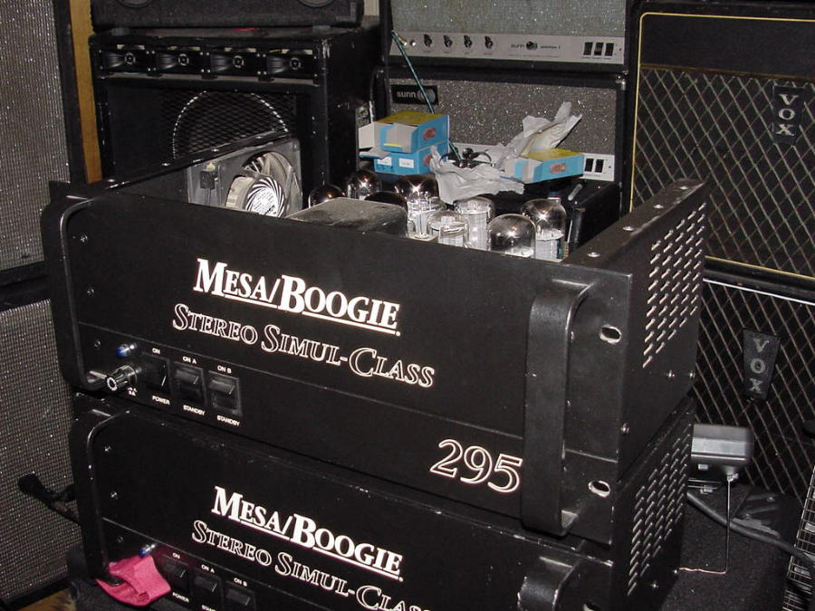 Here are a couple of Mesa 295’s and a Strategy 400 that we also used the KT88’s in. The EL34 sockets in the 295 run pretty hot so even the coolest KT88’s I had were pulling 90mA which is too hot so we ran the JJ E34L’s in the outboard sockets and the KT88’s in the inboard sockets in place of the 6L6’s where they pulled a very nice 45mA at 530 plate volts. This combination sounded fantastic! The lows were very deep and tight, the mids were thick and very harmonically rich. The highs were creamy without being at all brittle. Overall the amp was very punchy with a great dynamic.