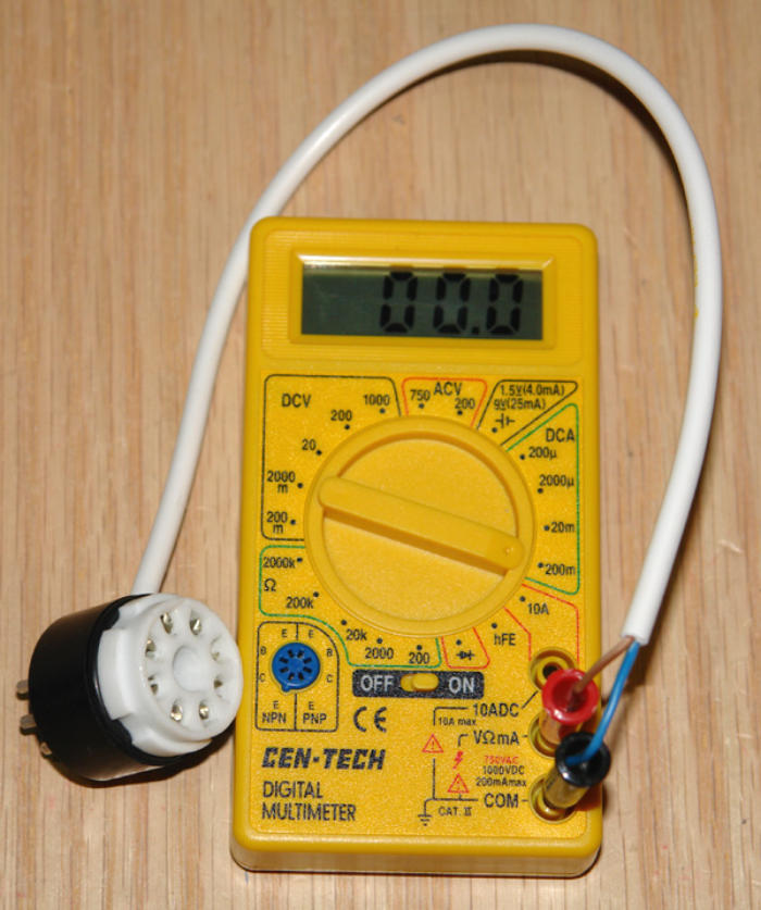 12/20/06 The new Eurotubes Bias Probes are HERE! As lots of you know, we are now a Weber dealer and we also carry the Weber probes and will continue to carry them. We have found that while these are great units they are also very tall, so in amps that need a short probe we now have one!We are making these from high quality JJ ceramic sockets and JJ tube bases. They are the type of probe that measures in Milliamps. These are now in the Eurotubes online store for 25.00!! It’s shown here with one of our “Cheap” $10.00 Multimeters.