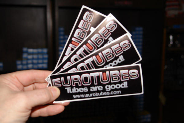 11/28/06 The new Eurotubes stickers are HERE! So many guys have been asking for stickers that we finally got off dead center and got the job done. They are nice full four color, laminate coated, so no tearing and they stick big time! We have been shipping out all orders with a free sticker since last week and if you want to purchase more of them they are two for a buck in the online store!