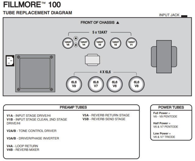 All of our Mesa Boogie Fillmore 100 full Retube Kits are designed specifically for these amps. Every kit is configured to provide a specific sound/experience.