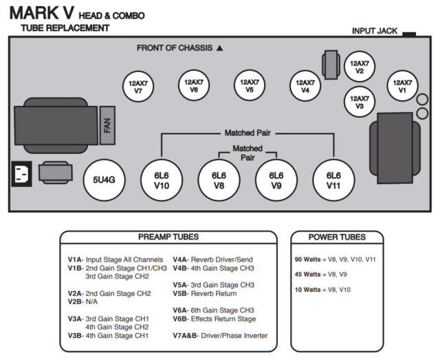 Unlike other Mark Simul-Class Boogies the Mark V’s bias is too hot in the EL34 mode for the JJ E34L’s. The E34L’s are hot tubes pulling more natural plate current than the rest of the EL34 family.