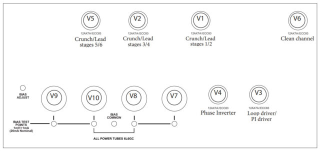 Note: Peavey has again shuffled the “V” numbers so we made a very descriptive tube chart so that the tube positions make sense.