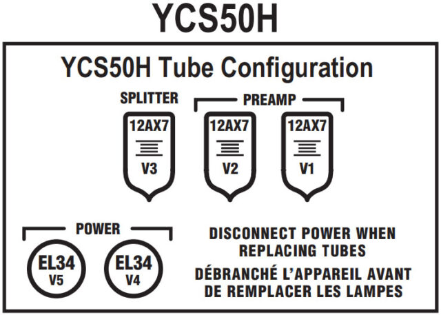 The YCS Head comes with EL34’s while the Combo version comes with 5881’s. Both amps can use either 6L6 or EL34 type tubes. All of our Retube Kits here accommodate both amps.