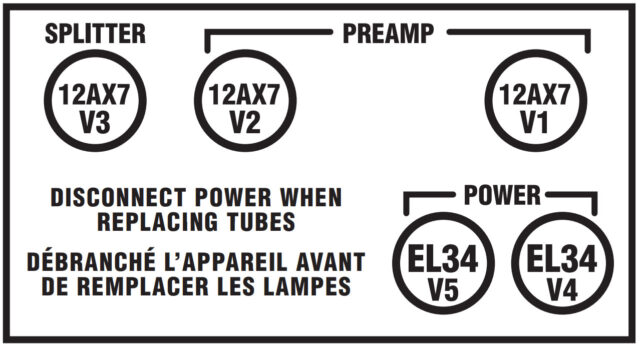 The ECC803S V1 Option Retube Kit uses the Long Plate JJ ECC803S in the V1 position. The JJ Long Plate ECC803S has a little lower gain with big thick mids and a little more sparkle in the highs. The kit includes one matched pair of JJ E34L’s by default, one Balanced JJ ECC83S for the phase inverter (V3, farthest from the power tubes), one Standard JJ ECC83S for V2 and one Standard JJ ECC803S for V1 (closest to input jack).